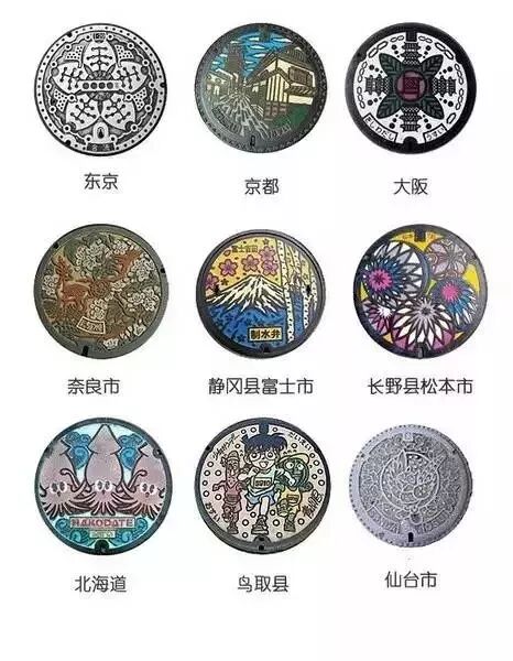 走在日本的街道上,你会看到各式各样的井盖,创意十足的印着城市的特色,如今日本约已有6000个艺术井盖。