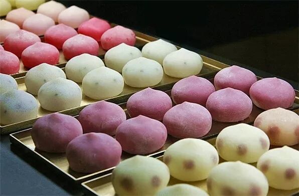 日本最受欢迎的和果子之一,这个馒头可不是不印象中的馒头,和中国的大白馒头不一样,日式馒头外皮以面粉为主,里面包着馅料,多数是甜味的,有时也会用蔬菜做馅料,颜色更是丰富多彩。