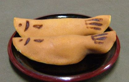 是日语中“小鱼”的一种叫法。用蛋糕质地的材料弄成椭圆形,接著切成半月形,用烙印加上了眼和鳍的符号。看着和小鱼一样,里面还会裹着馅料。外形可爱,常常让人不忍下口。