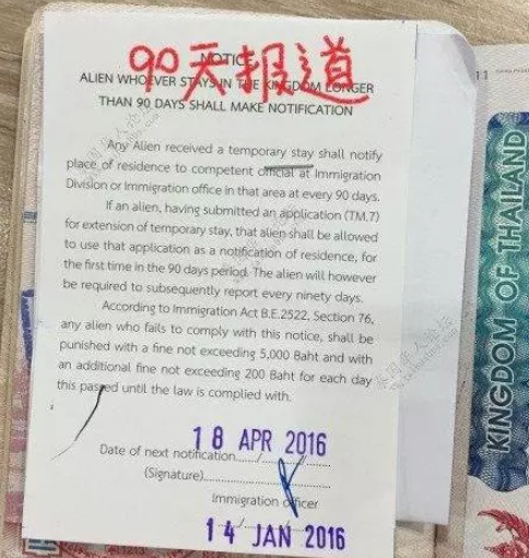 PS:90天报到可以提前15天或者往后7天的时间内去进行(视线君建议最好是提前1,2天,不要延期比较保险)。只要你是外国人,90天一定要去移民局报到,迟到一日,罚款500,最高罚2000。