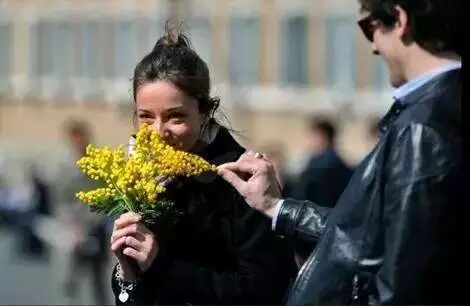 每年三八前夕,意大利的大街小巷上都会飘逸着黄色的含羞草,而每个女人在这天都会收到一束美丽的含羞草(女人花),甚至浪漫的意大利男人,在早上会把含着露珠的含羞草含情脉脉的送给自己的老婆,以示对她们的尊重。据说,在意大利这种小黄花象征着女性,无论年轻的还是年迈的女人,那一天手里都拿着这花儿,不少男人手上也捧着,准备送给老婆或者老妈的,还会有人在路上免费发放。