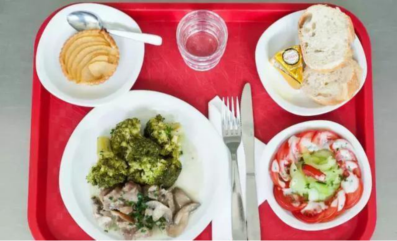 在看看法国的中学食堂和我国的中学食堂做对比,像我国的中学食堂,超过80%的都是热菜,而法国只有60%。法国中学食堂不仅种类丰富,还增加了生食和冷食的比例。