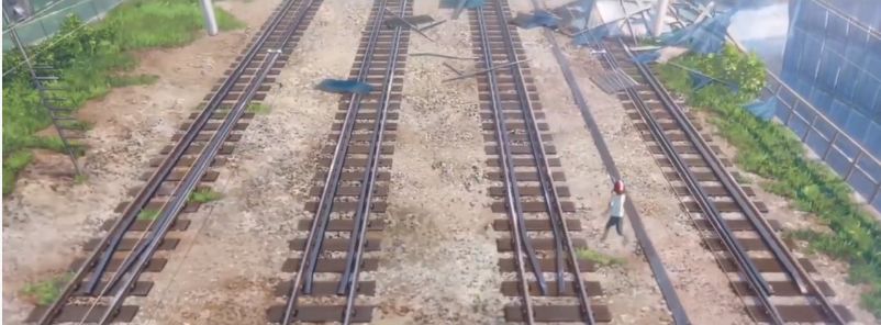 阳菜飞向天空进了云朵里面,带着的戒指最后从透明的手指上飞速掉落,此时的帆高已被警察逮捕,走向警局门口的他捡到了天空掉落的戒指,他再也无法控制自己,挣脱警察,一边飙泪,一边飞速逃离警察的追捕去寻找阳菜,做摩托,跑过铁轨