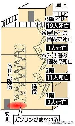 据悉,火灾当日,浓烟滚滚,死者2人在一楼遇难,11人在二楼遇难,20人死于三楼通往天台的楼梯上,其中大部分人堆叠在天台屋顶的门附近。