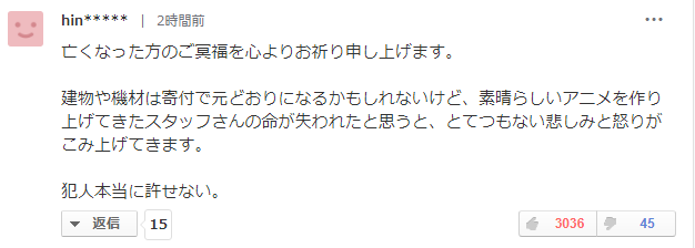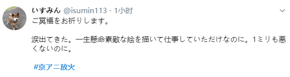 愿逝者安息。禁不住流下了眼泪。明明大家(被害人们)那么努力地在创造美好的动画,明明大家没有一点错。