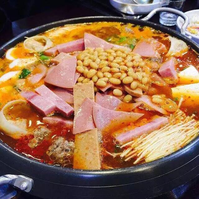 传说,朝鲜战争期间驻韩美军的物资供给十分丰富,一些美国军人不当回事,把那些吃不完的食物就随手丢弃了。同时,美国军方还规定,作为军需品供给的火腿、香肠等超过一定流通期限后,必须自动当作垃圾处理掉。由于可吃的东西很充分,所以即使保质期超过一天也会被扔掉。美军吃剩下的或者丢弃的火腿和香肠被周边的韩国居民收来,和泡菜一起煮,发现很美味,所以有了部队汤。演化出了部队火锅