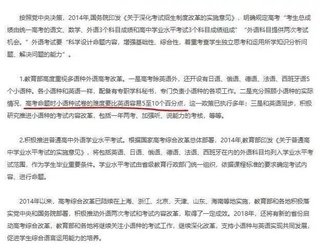 教育部曾在去年的招生文件中明确表示,考生可选择西语、法语、德语、日语、俄语等语言参加全国统一招生考试。