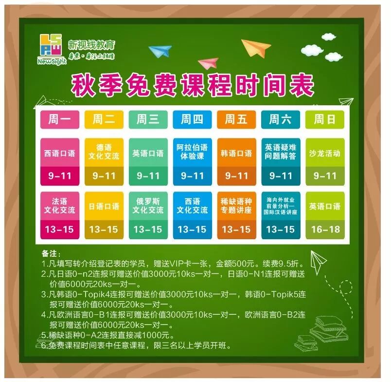 更主要的是,新视线秋季有福利,每周三上午皆会有免费的“英语口语”公开课,所有报名学员均可免费参加,与老师面对面交谈。锻炼口语交际能力,详情戳↓