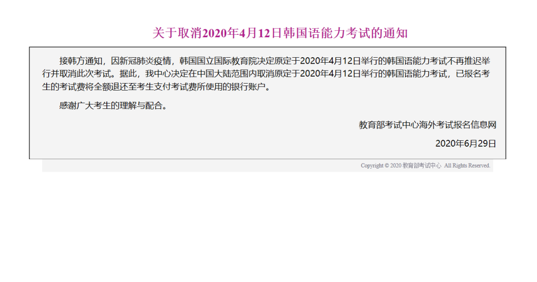 根据海外考试网的官方通知,韩语TOPIK 4月份的考试已经彻底取消,而非延期!
